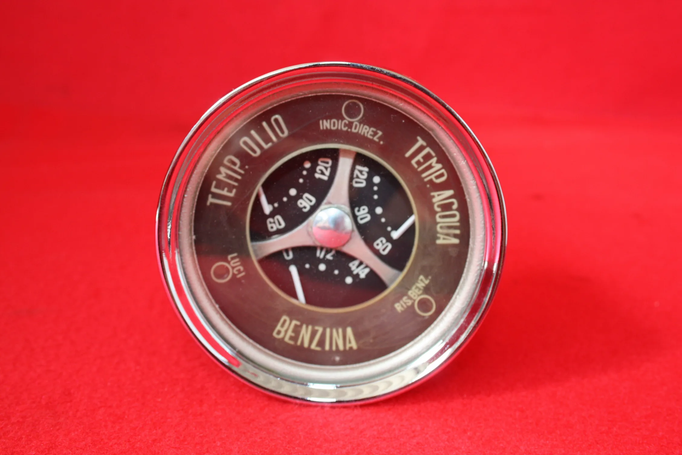 Strumento, Apparecchio combinato temperatura acqua, olio e livello benzina. in ottime condizioni