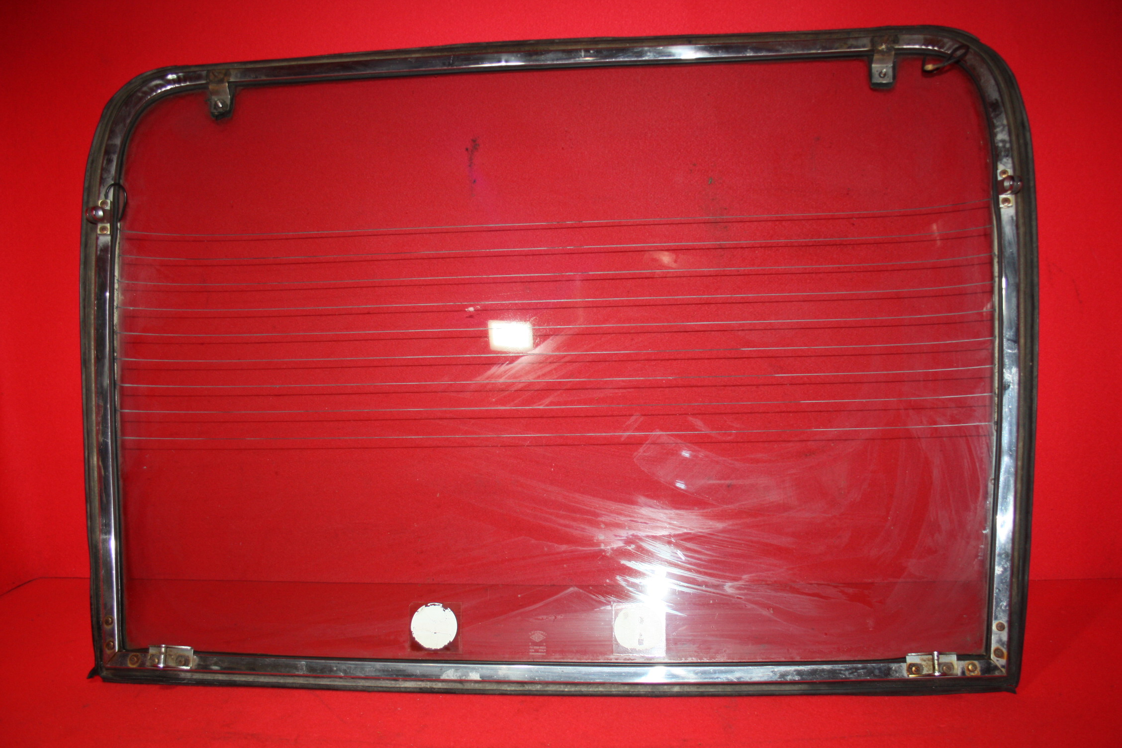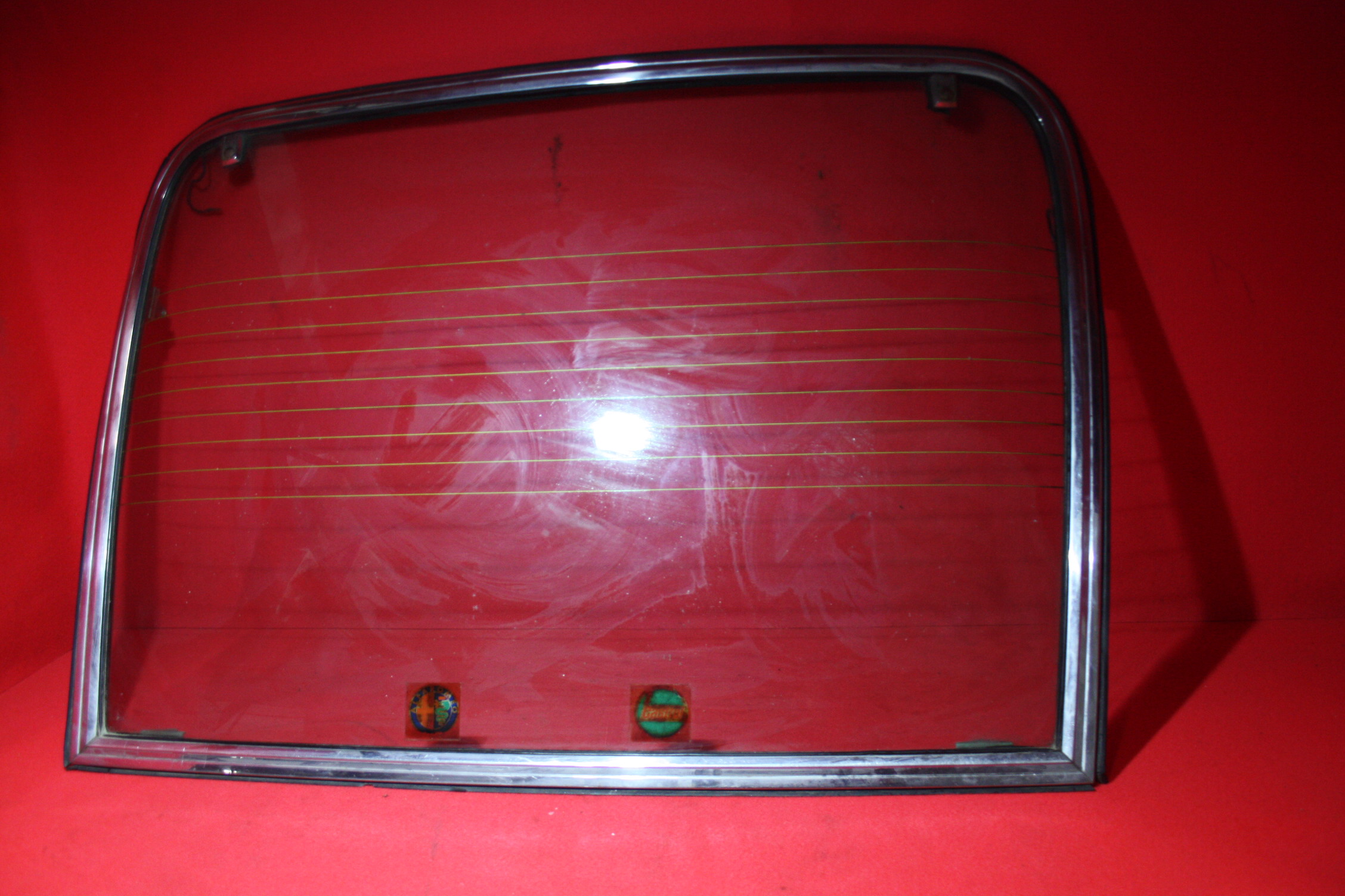 Cristallo lunotto posteriore completo in ottime condizioni, completo di Riscontro serratura Destro e sinistro e Profilato lucido